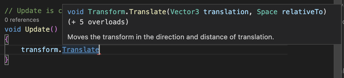 transform.Rotate를 통해 오브젝트를 회전 시킬수 있고, Translate를 통해 움직일수 있다는 것을 배웠다.